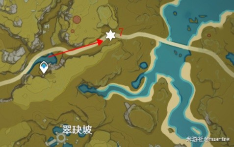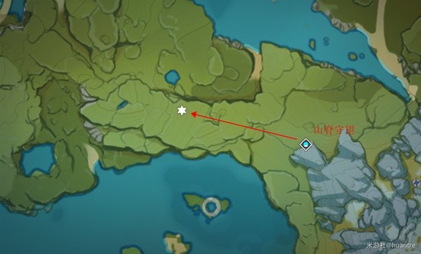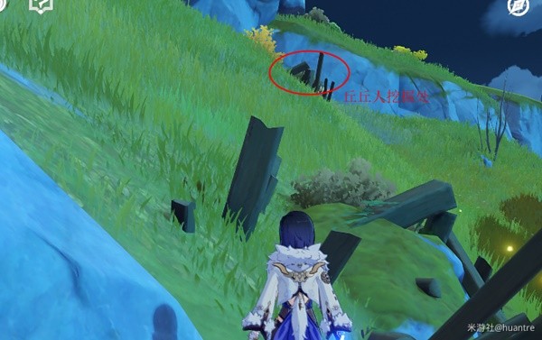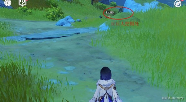传送锚点出来,沿着右后方道路上坡,有一个丘丘人在挖掘(调查点)。