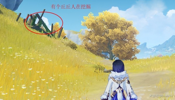 传送锚点出来,沿着右后方道路走,有个丘丘人在挖掘(调查点)。
