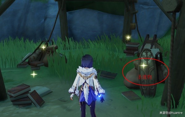 传送锚点出来,往左方向走,飞下去,有一个帐篷,右下方的是(圣遗物)。