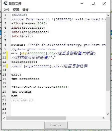 你可以按照我的这个分析,抛砖引玉,把僵尸的另外2个血量,都赋值0,就可以彻底秒杀僵尸了!