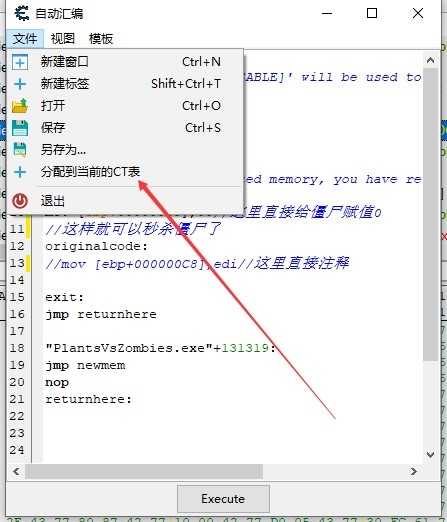 按照上图改写了代码以后,不要Execuye按钮,我们直接 文件→分配到当前的CT表。