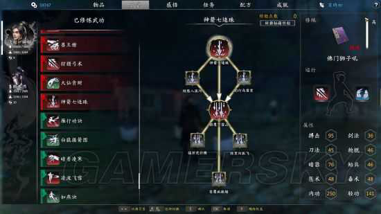 后期:攻击技能(神箭七连珠)+内功(桃谷升仙诀或左右互博术)