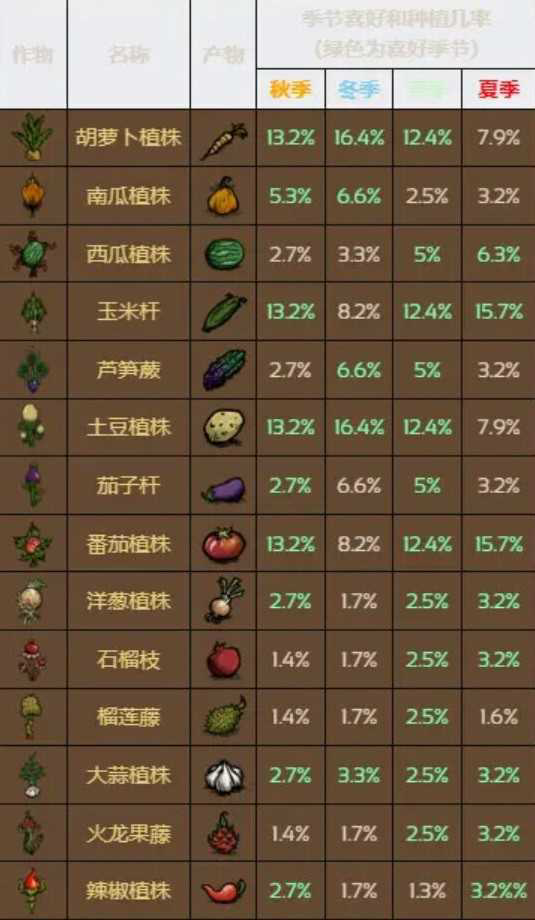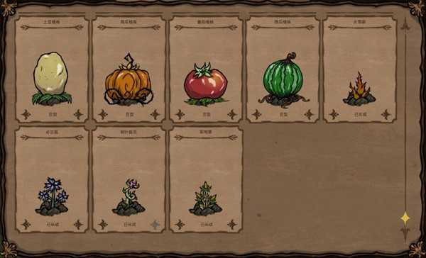 在目前版本的饥荒联机版里一共有十四种不同的作物,每种作物都有八种不同的形态,拥有不同的种子,需求的养分和种类的数量也竟不相同