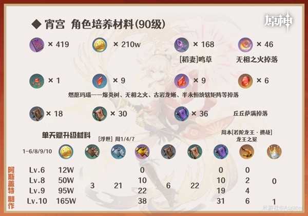 ①.该技能的整体倍率不高,在宵宫的整体输出中占比较小,可以选择最后升级。