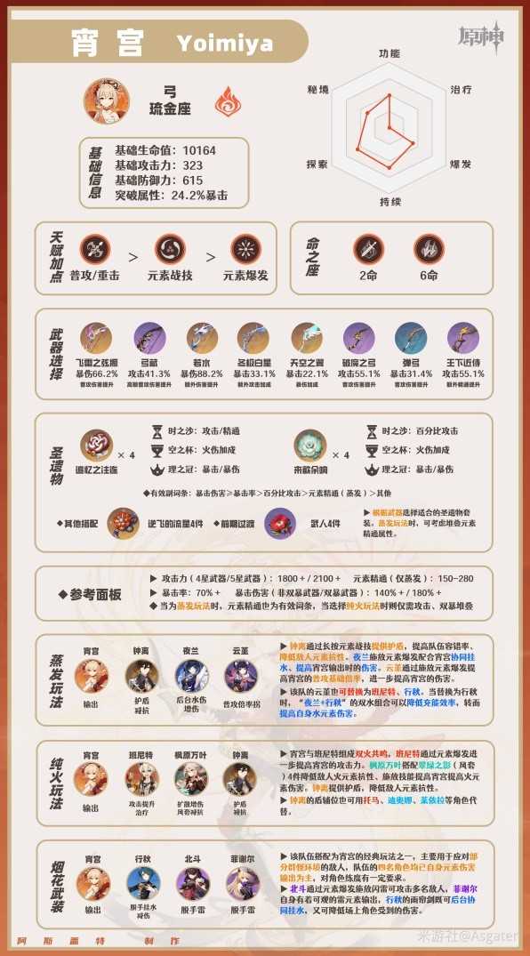 《原神》3,7版本已经更新,宵宫返场,那么这个版本下应该为其搭配装备和队伍呢?请看下面由“Asgater”带来的《原神》3.7版宵宫全方位培养解析,希望对大家有用。