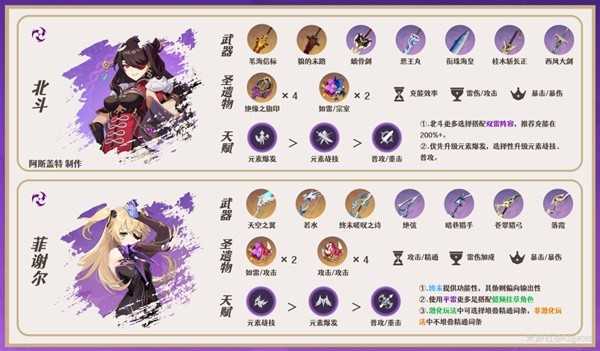 ②.当武器选择飞雷之弦振(需要保证能量不满)、破魔之弓(需要保证满能量)时优先考虑搭配来歆余响4件套。