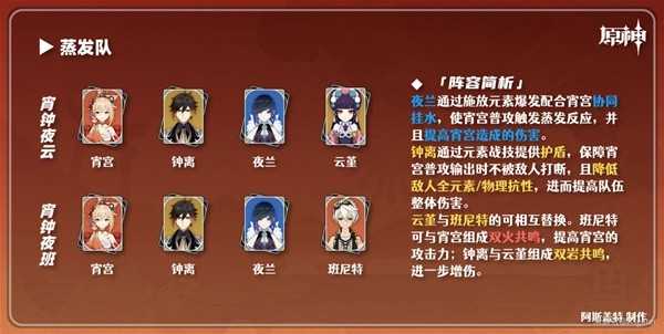 ①.当对自身操作较为自信时,可考虑将钟离替换为枫原万叶,通过万叶技能的双扩散尽最大程度提高“宵宫+夜兰”的伤害。