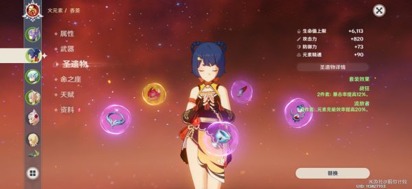 刻晴1700,48,105。香菱1600,55,100。遗物蓝紫金乱搭(实在没好的,几十个金色狗粮)。