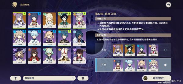 螺旋的阵容不是一成不变的,如果你卡在某关,不妨换下队伍角色的位置,也许就有奇效。这里简单整理了一下各层需要的搭配。
