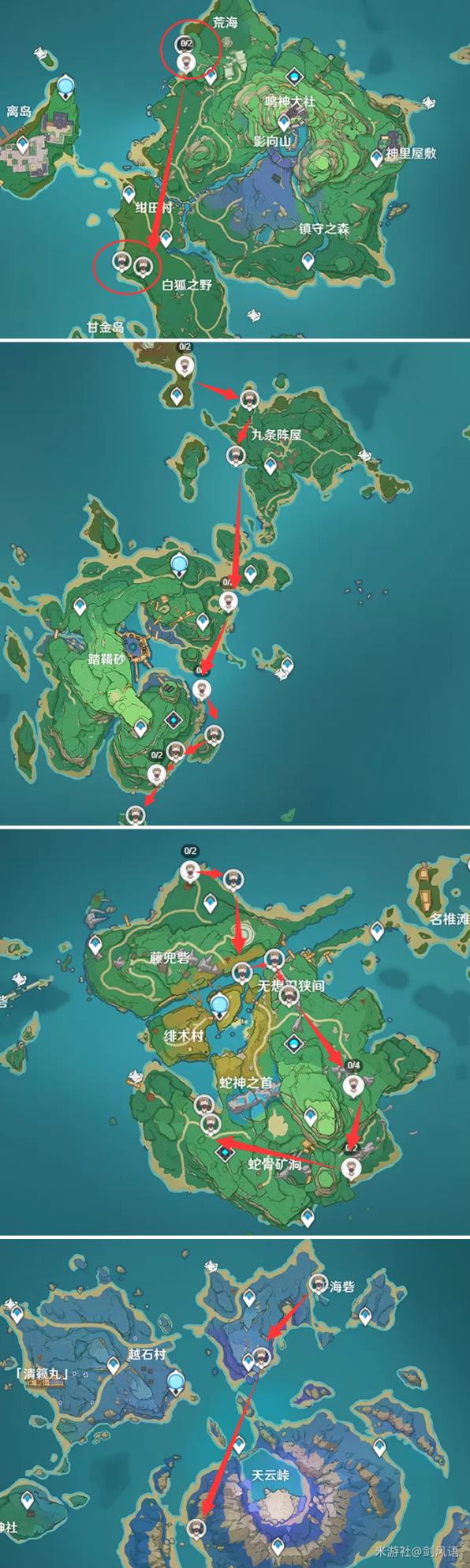 2.【攫金鸦印】打盗宝团怪物掉落,分布在璃月和稻妻地区,如下图。做成两张长图,可以保存下来查看。