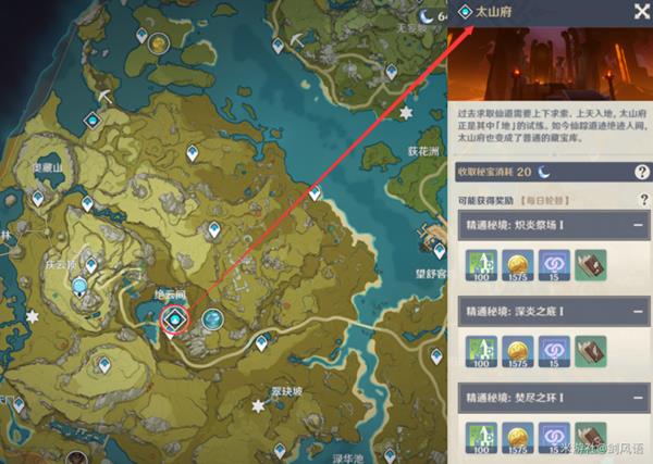 4.【「勤劳」的哲学】位于璃月绝云间地区,太山府秘境掉落(周二/周五/周日开放)。