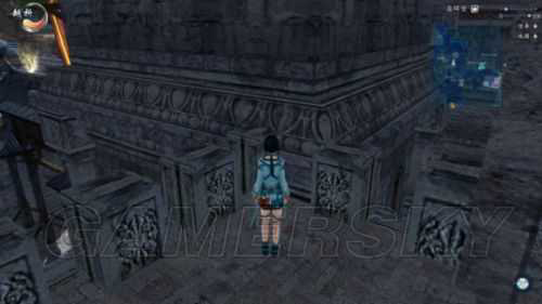 走到这个角度,第一个难点,跳到较低的顶上,容易失败,可以在这里存个档