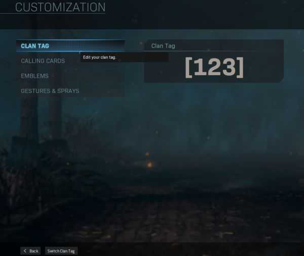 最后一步,去设置战队标签,对准“战队标签(Clan Tag)”按“R”键。