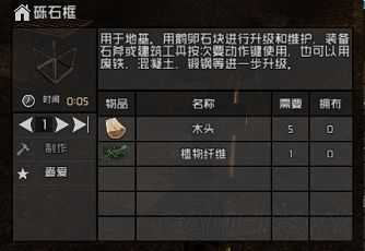 材料:1木框架需要10木制作,1砾石框需5木1纤维(纤维本作为刷工具、防具必备物品)。