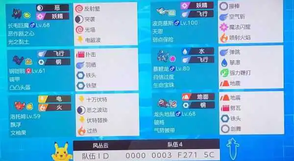 这个队地鼠是联防电,针对洛托姆和mnq的,如果这三个功能都用不上,那可以考虑不上地鼠。我个人非常喜欢暴鲤龙,所以经常是暴鲤龙加飞机双选,虽然这样不稳。
