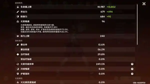 上水工具人。命之座二命以上(延长大招时间)。六命一下堆充能,祭礼剑,充能200以上。六命充能压力低了可以考虑兼具输出。圣遗物推荐:二宗室二水套。