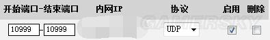 ※需设置的信息——端口:10999-10999;内网ip因人而异;协议选择UDP;状态为启用。