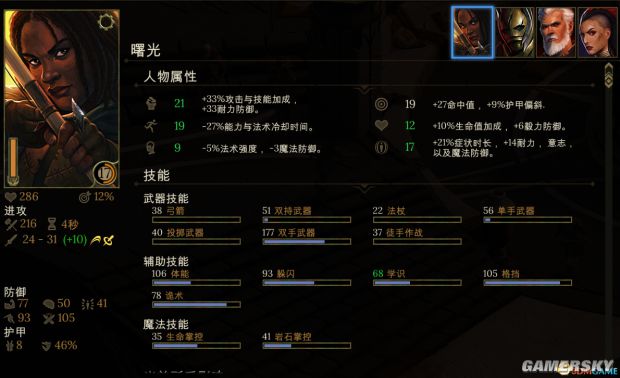 还有一种天赋一定要说的就是有些角色会带加经验的天赋,比如铁桶男有个双手武器经验加成天赋。这种都必须点因为经验加成可以拉开等级差距。。最终主角双手武器等级177比其他人的武器等级高30左右,人物等级比同队的双刀女高了4级。(不知道是不是没离队过的原因)但是经验加成其实就可以算成更多的属性点。