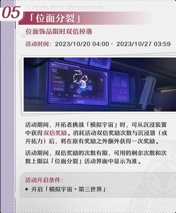 《崩坏星穹铁道》1.4版本即将更新,那么1.4的前半段有哪些活动呢,想要了解的玩家请看下面“崩坏星穹铁道”带来的《崩坏星穹铁道》1.4版本上半活动一览,希望能够帮助大家。