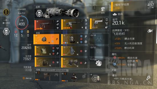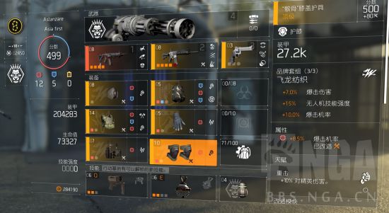 我们的配装目标:武器伤>95,爆率>50,暴伤>45,爆头>50,精英伤>85,血甲>25万。