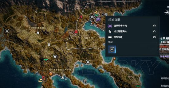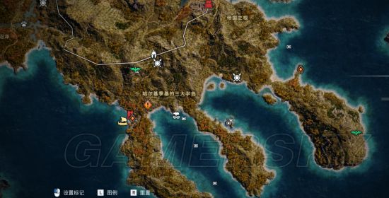 在支线任务死者复苏中揭露击杀(因为我通关以后忘记了任务的名字,可能名字不太对但肯定有个死字(确信脸))任务的位置就在下图所示的哈尔基季基的三大半岛上。