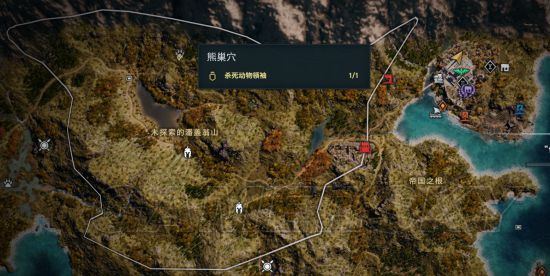 法拉达贡的揭露线索在大流士的藏身处,但也可以越线索直接在下图所示的熊巢穴中击杀。