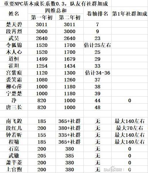 《侠隐阁》游戏中一共有四种基础属性,游戏中有的NPC的四维是比较高的,那么重要NPC的四维属性排名是什么呢?下面请看由“二代小虾米”带来的《侠隐阁》重要NPC四维属性排名一览,一起来看看吧。