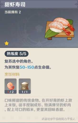 一星食谱:甜虾寿司(稻妻志村屋购买)