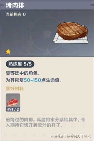 点评:因为这俩需要的食材都非常简单(特色料理分别是班尼特—提瓦特焦蛋、安柏—侦查骑士烤肉),复苏食物并不需要提供太多的恢复生命值,大多数时候仅需它的复苏效果