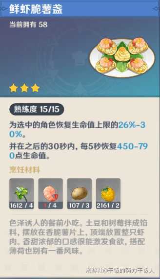 三星食谱:鲜虾脆薯盏(蒙德猎鹿人购买)