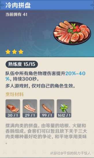 三星食谱:冷肉拼盘(蒙德鹰之门秘境通关宝箱获得)
