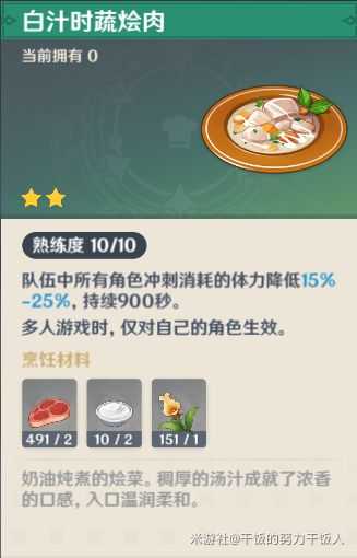 二星食谱:白汁时蔬烩肉(蒙德猎鹿人购买)