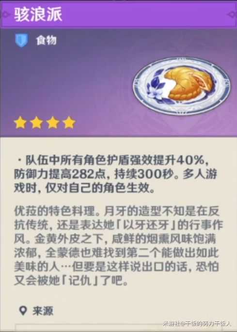 点评:它所需要的所有食材,目前三大世界皆可获取,稻妻禽肉相对较少,但不影响这个食物的实用性(特色料理—罗莎莉亚—审判的晚宴)