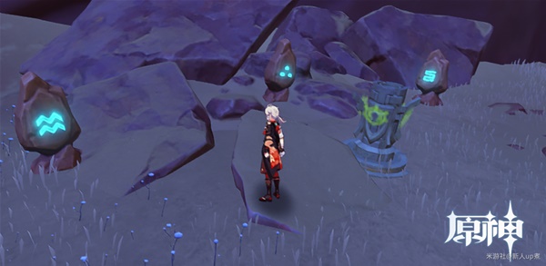 这里有4个草元素方碑,首先来到这里,这个是解谜顺序哦。