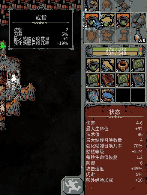 ②装备方面首先在巫妖前保证有三个骷髅、骷髅等级用最高级的书、其他饰品带强化骷髅概率,概率能在50%左右就好,这种带牌方式基本上3loop能见巫妖,闪避稍微高点甚至能无伤,这时候的巫妖就像块豆腐。