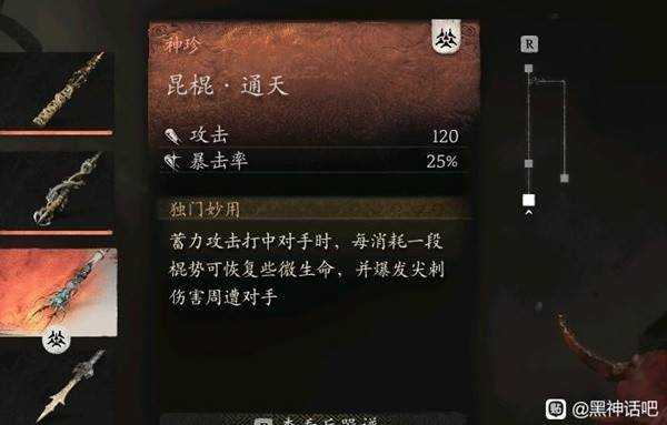 如果一周目想玩的话武器换金箍棒就行,就是少一点伤害,第一个根器一定要暴击伤害,还有安身术里面4棍,其他随意了。