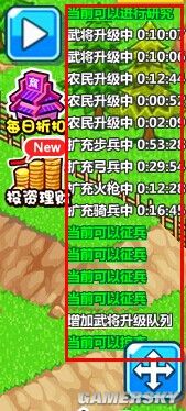 大家增加的列队后,可以同时对3个武将和农民进行升级操作,也可以同时对4种兵种进行扩充,甚至还能同时对4种兵一起征兵。大家可以增加列队功能,快速提升武将等级、扩充兵力,提升自身的战力水平,而提升农民等级能提高农民生产效率,这样能为你赚更多钱。