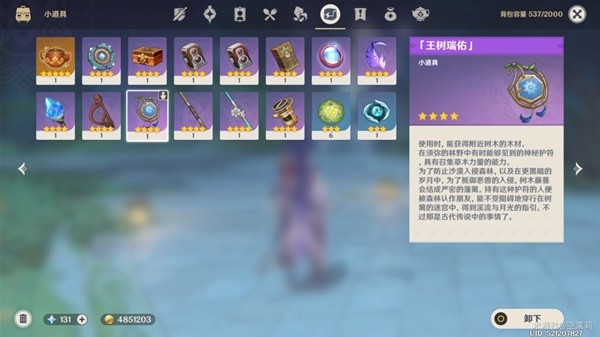 在此之前也推荐一个道具,玉树瑞佑,须弥声望三级可以获得可以大范围直接采集树木。
