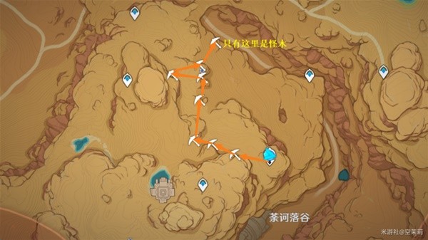 刺葵木在沙漠十分分散,相比怪木这种找一个点就能绕着砍一年的类型,刺葵木路线的选择就显得十分难办。