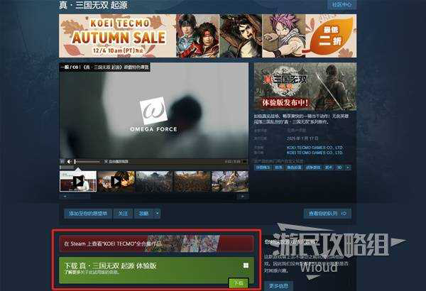 PC玩家可以直接在STEAM的游戏主页找到体验版的选项,STEAM游戏地址:点此进入。