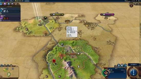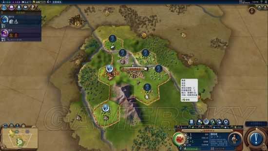 下一回合,首发了一个甘地,甘地?!,你妹啊,这难道就是我不造侦查的报应,这个文化城邦很重要,重要到关系到百分之25的种田效率,看了看任务,还好,妹子可以搞定,这里有一个翻译上的错误,我要科普一下,轮子科技的尤里卡正确的触发方法开发一个矿产资源。
