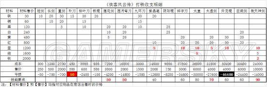 上图里红色加粗的是经测试与技艺书不符的数据。需要说明的是,我测算成本的前提是打铁消耗的矿石都是自己挖到的,也就是说我测算的是挖到的矿石直接卖商店和打造成武器再卖商店,两者之间的差价。如果从商店买矿石打铁的话,成本是要翻倍计算的。所以结论是别指望打铁能发财了(当然也没谁指望过),升龙穷三代,碎宇毁一生想要发家致富,还是多挖矿石和宝箱然后卖商店吧,顶多练剑和短柄的留下打造傲天和紫晶的材料,练刀的有修罗或者碎宇,用不用太皇其实无所谓了。至于冲打铁技能,把铁矿留着打朴刀或者短剑就够了,铁矿多就打朴刀,至少比起直接卖商店还有那么一丁点赚头,铁矿少就老老实实打短剑吧。