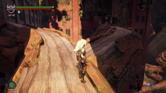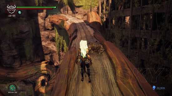 将镜头下拉,向下看,右手边有一个物品在发光,用雷形态飘下去就好。