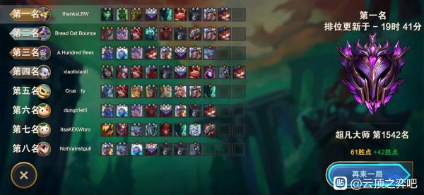 楼主最胡的一局就是开局三龙族,后面几波嫖到三丧尸,六人口d到瑞兹,选秀完做出丧尸转且装备给的好,黑飓风饮血直接做出来了,七人口又d到大头,直接开五龙族,最后差点追出三星大头。