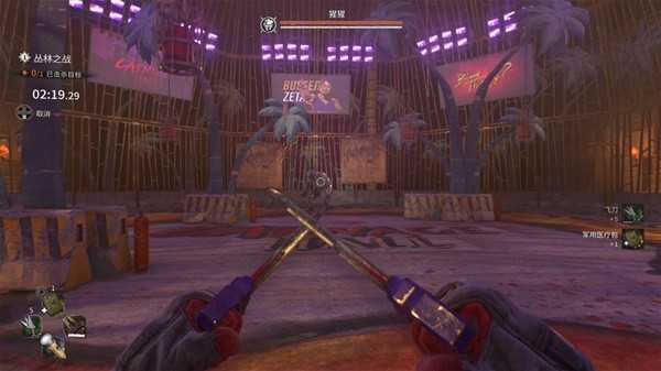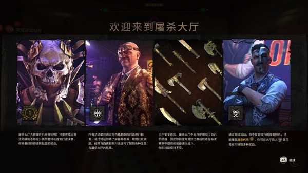 那么我们的艾登卡密来到了屠杀之屋以后,就面临着全部装备被没收,从零开始做任务攒积分提升排名,最终获得挑战骷面的机会。任务分为屠杀(限时击杀红圈目标,一般会有3波以上,此外还有黄色携带重装武器的特别僵尸)、怪物(单挑一个强力敌人)、竞速(在一个搭建成1带游戏场景哈兰风格的场地内跑酷,需要依次到达若干个检查点)和演出(有哈兰一日、侠盗罗宾汉等众多剧本,每个剧本包含若干限时条件)。