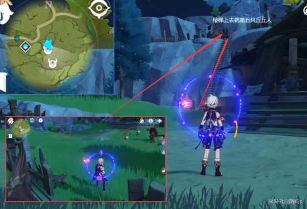 清完朝着地图的南方向走,从梯子上去就是五只丘丘人。