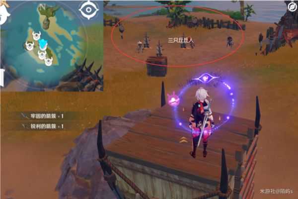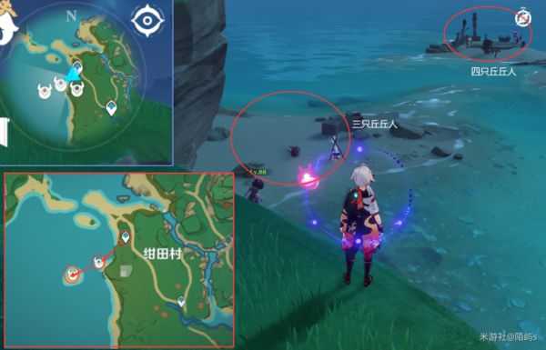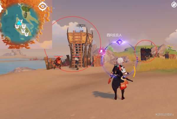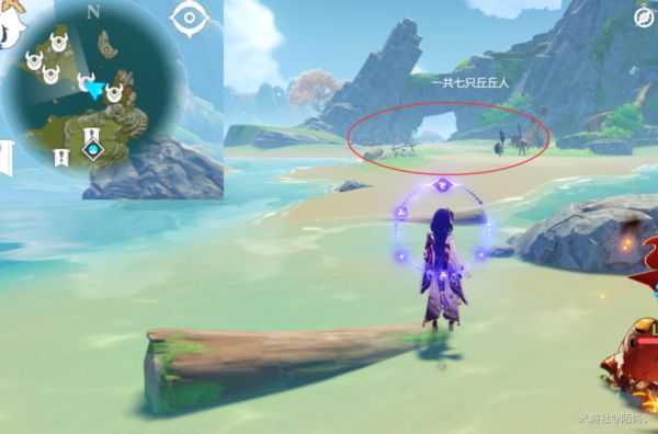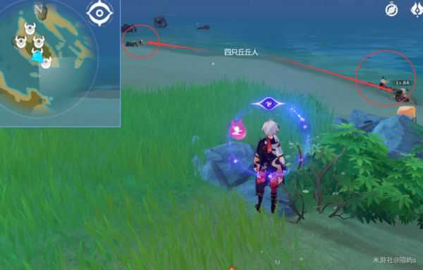 首先我们来到瑶光滩左上角的传送点,朝着地图的南方向跑,在前面就能看见四个丘丘人。