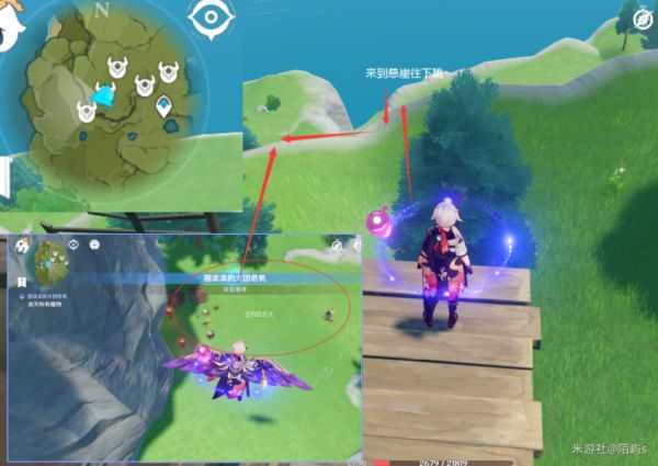 朝着地图的西方向悬崖跳下去,左手边就是三只丘丘人。