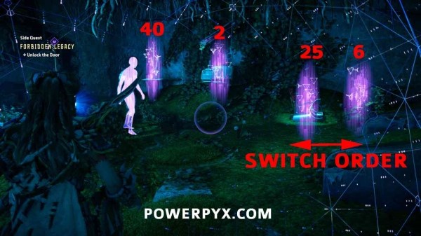 最左侧(鸟雕像)她说【40岁获奖】,左二是【氢原2流】,第三个是【25周年】,第四个则是无人机【蜻蜓-6】,开启字幕更容易获得线索。但是地上的两件道具顺序是错的,在按照扫描顺序输入密码时,埃洛伊会说它们掉在地上前可能在不同的地方,因此将6和25交换即可获得正确的密码。