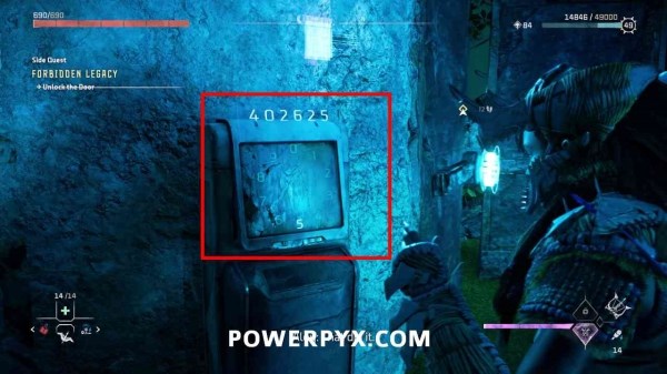 通过扫描破墙后面大门面板左侧的紫色数据点来获得线索,然后按触摸板进行阅读。